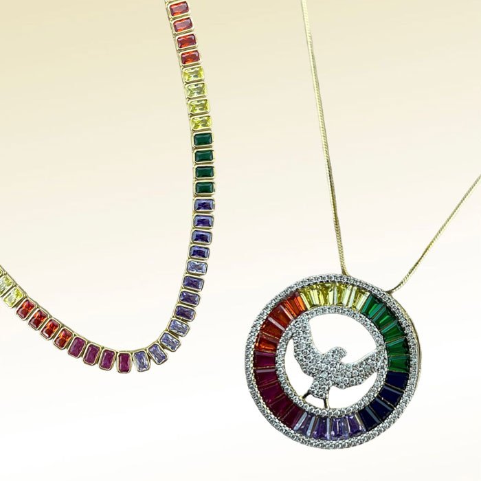 Seja minimalista ou não, as cores vieram pra ficar e ganharam o gosto de todas as mulheres apaixonadas por joias! Prova disso, são as famosas que andam por aí esbanjando cor. Colares, brincos, anéis, pulseiras? As cores são um ótimo jeito de sair do tradicional, sem deixar a elegância e feminilidade de lado.